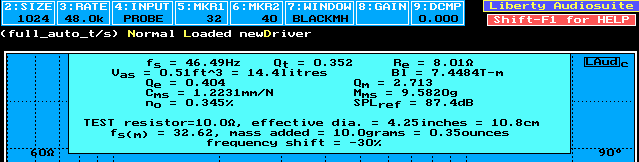 参数特性: 以下参数特性均是用laud电声测试系统在非消声室下测试。 1、theile-small参数: